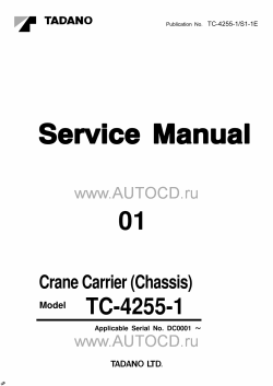 Заводская инструкция по ремонту крана Тадано - Tadano Crane Carrier Chassis TC-4255-1 - Service Manual содержит подробную информацию о сборке и разборке агрегатов, процедур диагностики, электрические схемы, моменты затяжек и др.