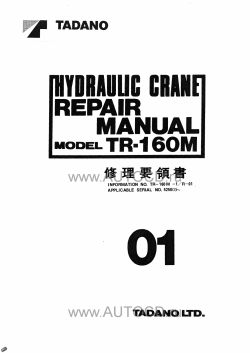 Заводская инструкция по ремонту крана Тадано - Tadano Hydraulic Crane TR-160M-1 содержит подробную информацию о сборке и разборке агрегатов, процедур диагностики, электрические схемы, моменты затяжек и др.