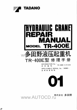 Заводская инструкция по ремонту крана Тадано - Tadano Hydraulic Crane TR-400E-1 содержит подробную информацию о сборке и разборке агрегатов, процедур диагностики, электрические схемы, моменты затяжек и др.